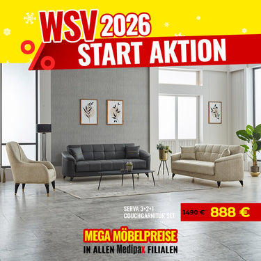 Die Couchgarnitur "Serva" verbindet stilvolles Design mit herausragender Funktionalität. Die elegante Polsterung und die klaren Linien machen sie zu einem wahren Blickfang in jedem Wohnzimmer. Mit der integrierten Schlaffunktion bietet "Serva" eine komfortable Lösung für Gäste und spontane Übernachtungen. Zusätzlich sorgt der praktische Stauraum unter den Sitzflächen dafür, dass Sie Kissen, Decken oder andere Utensilien bequem verstauen können. Die robusten Füße und die hochwertige Verarbeitung garantieren Langlebigkeit und Stabilität. Erleben Sie mit "Serva" höchsten Komfort und stilvolles Wohnen.