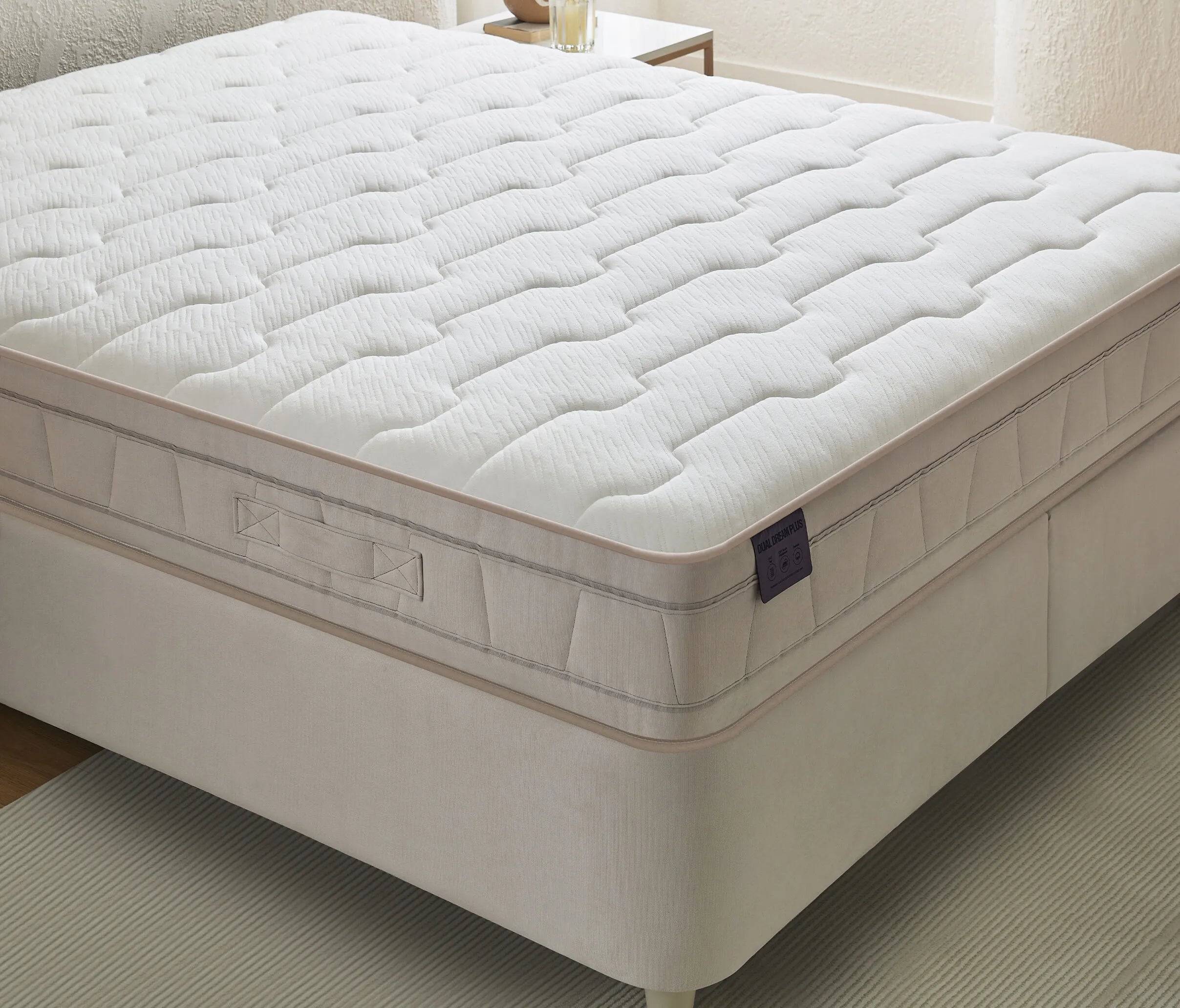 Das Dual Dream Plus Bettset vereint Komfort, Funktionalität und modernes Design. Die Matratze mit DHT-Federsystem bleibt auch nach vielen Jahren formstabil und bietet eine lange Nutzungsdauer. Dank der beidseitigen Verwendung sorgt sie im Sommer mit ihrer Baumwolloberfläche für ein angenehm kühles Schlafklima und im Winter mit Woolmark®-Schurwolle für wohlige Wärme.