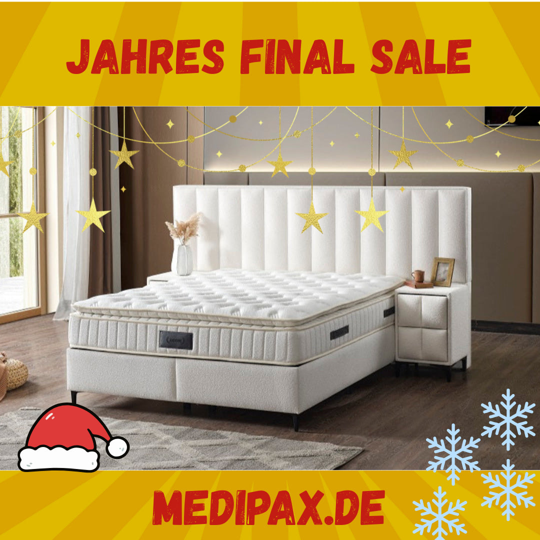 Erleben Sie den neuen Inbegriff von Komfort mit dem Moda* Set von Medipax. Dieses Set vereint Eleganz und Komfort und verwandelt Ihr Schlafzimmer in eine Oase der Ruhe. Hergestellt aus hochwertigen Materialien, bietet das Moda Set nicht nur ein Bett, sondern auch einen luxuriösen Lebensstil. Mit seinem eleganten Design verleiht das Moda Set Ihrem Schlafzimmer eine anspruchsvolle Atmosphäre. Das Kopfteil und die Basis wurden mit Liebe zum Detail gestaltet und machen Ihr Zimmer zu etwas Besonderem. Hochwertige Materialien und sorgfältige Verarbeitung ermöglichen eine jahrelange Nutzung des Moda Sets. Profitieren Sie von einer langfristigen Investition.